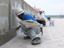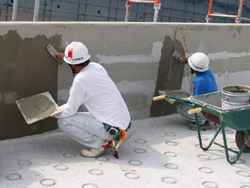 主にタイル・クロス・塗装仕上げの下地壁として施工されるが、刷毛引き仕上げやモルタルカラクリートなどを用いて仕上げ壁としても使用されている。 商店・マンションなどのRC建築で施工される事が多い。
