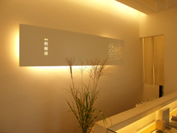 外壁、内壁ともに漆喰を塗ってあります。 桔梗屋の紋章も漆喰仕上げ。 外壁は、5回以上重ね塗りしています。 由緒ある和菓子屋「桔梗屋」さんに相応しい重厚な白が出せたと思います。 何度も店舗デザインの雑誌の取り上げられている建物。 程よい甘さでまろやかな和菓子を目当てに、遠方から買いにくるお客さんも多いとか。